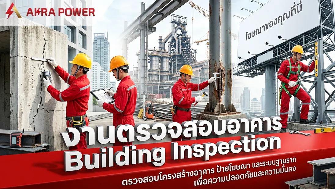 บริการ: ตรวจสอบอาคาร, ตรวจป้ายโฆษณา, ตรวจสอบโครงสร้างและระบบไฟฟ้าครบวงจร